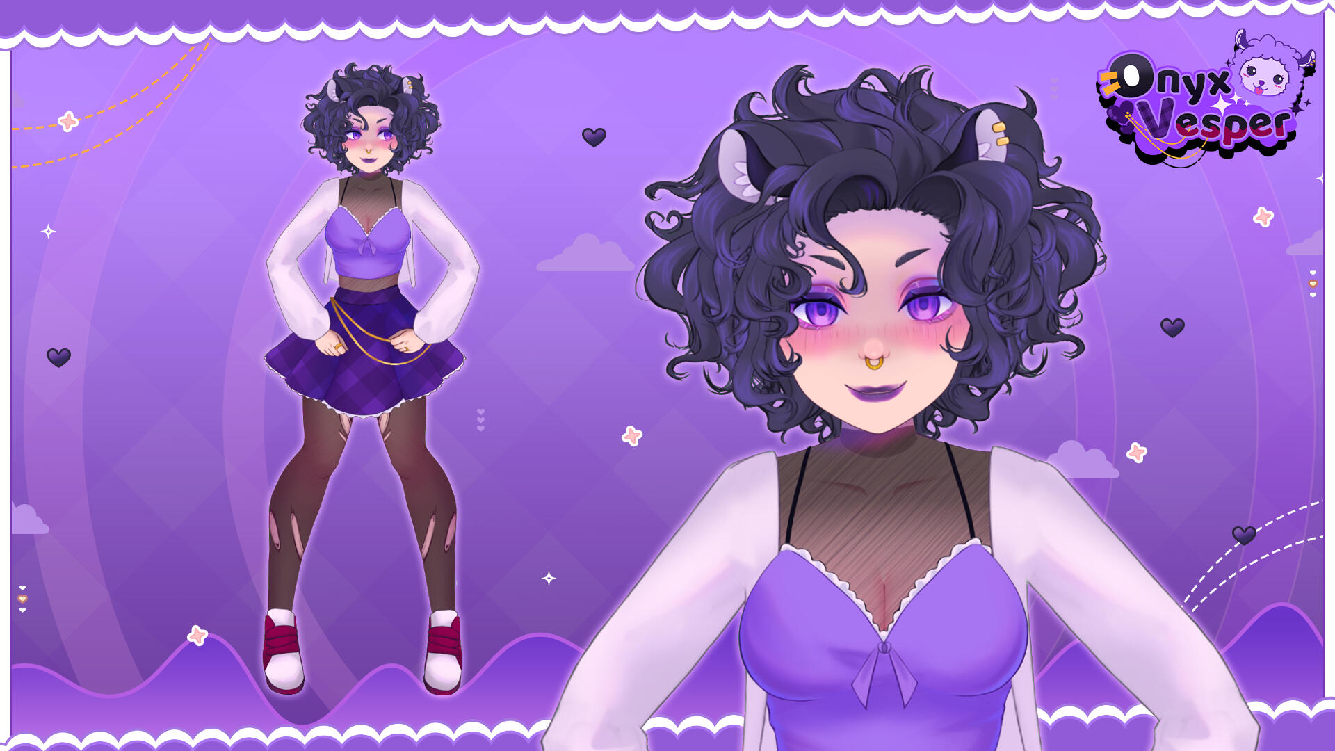 Hi I'm Onyx Vesper! I'm an Alpaca Vtuber! I speak English and some German! I stream on Twitch and I post edits elsewhere!